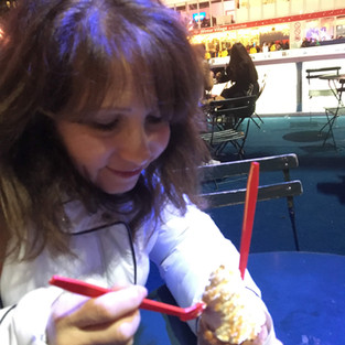 Hey New York and Christmas lovers, Bryant Park Christmas Village is the place to go if you love both. Beginning in October through early January every year, Bryant Park turns into a winter wonderland with vendors surrounding an ice skating rink with music, Christmas trees small tables and chairs. It's fun to feed the pigeons. If you do, you will find many new feathered friends! Vendors line the park and sell specialty foods, hot chocolate, pet treats, ornaments, journals, beautysupplies and more. Chris and I bought a chimney cake, a novelty cake originating from Translvania. The strips of dough are wrapped around a metal tube and cooked on a rotisseri. When done, steam comes out of the top, like a chimney. Then, it is filled with all kinds of goodies, like chopped apples and whipped cream, chocolate, sugar and other delicacies. Bryant Park is just a short walking distance from Port Authority so its a convenient gem for those coming from New Jersey. You can ice skate for free if you bring your own or rent them. Skating makes the experience so much more enjoyable, particularly in the evening when you can look up at the skyscrapers and see the buildings surrounding this oasis of Christmas wonder. Gotta go.